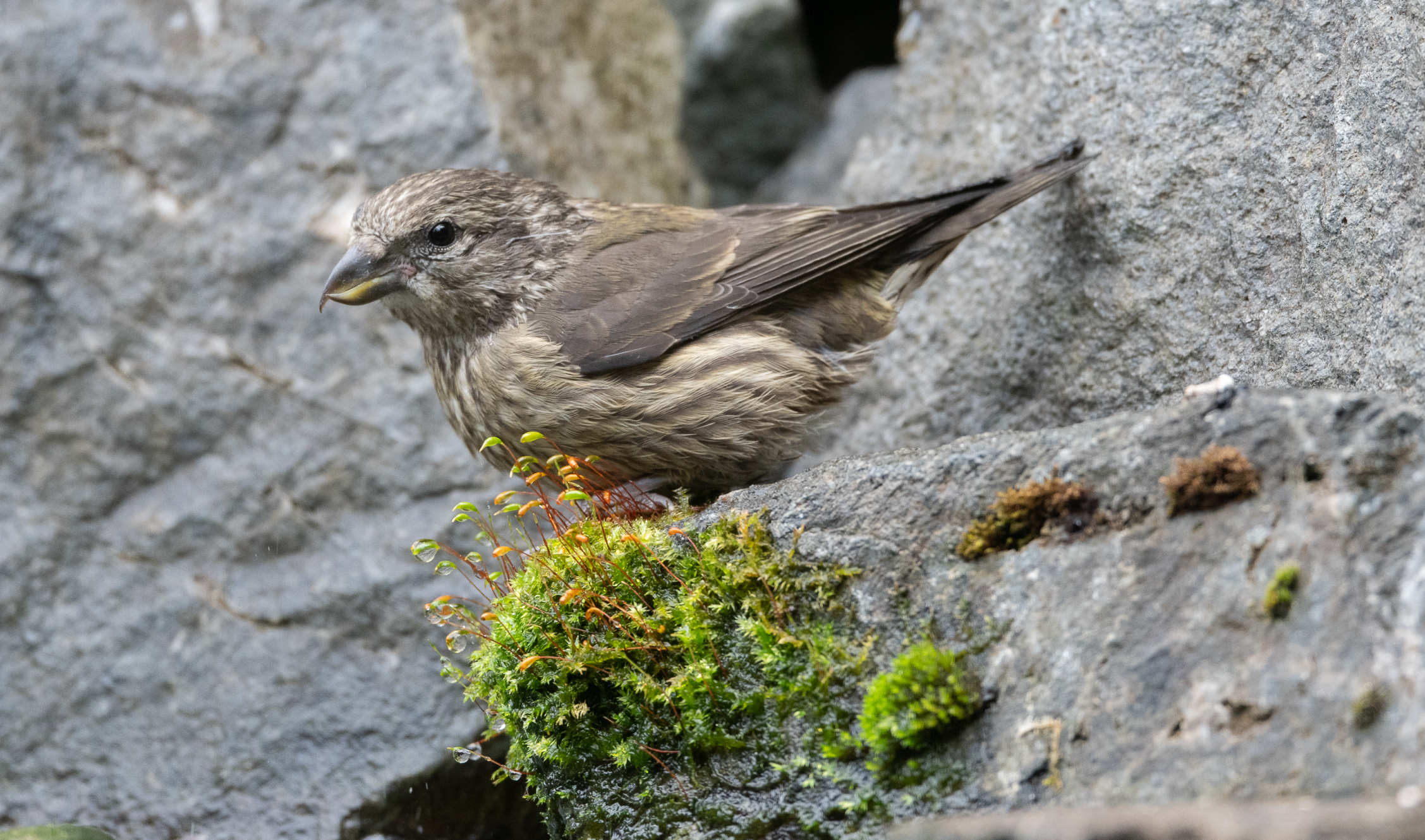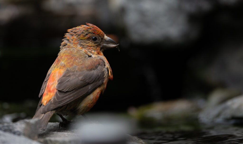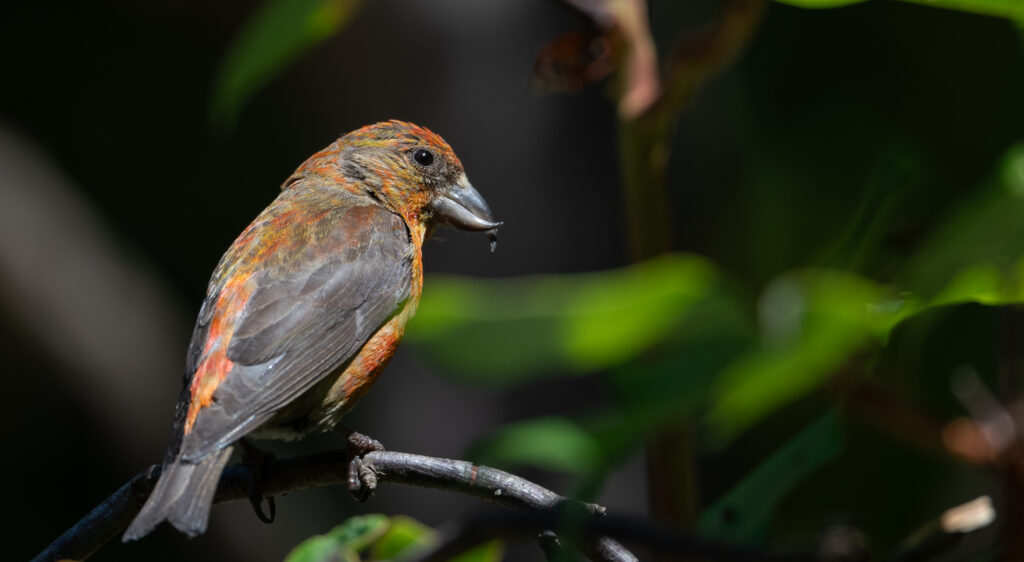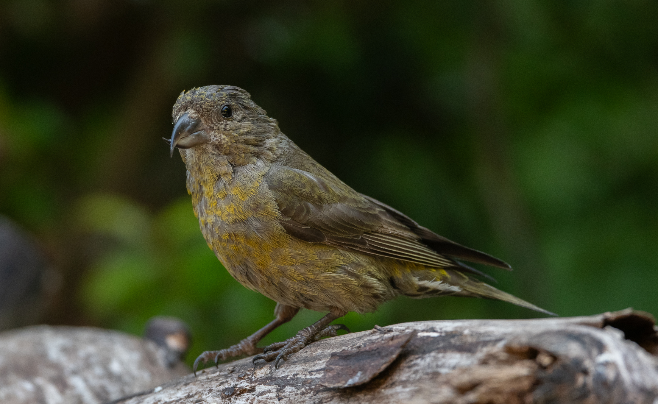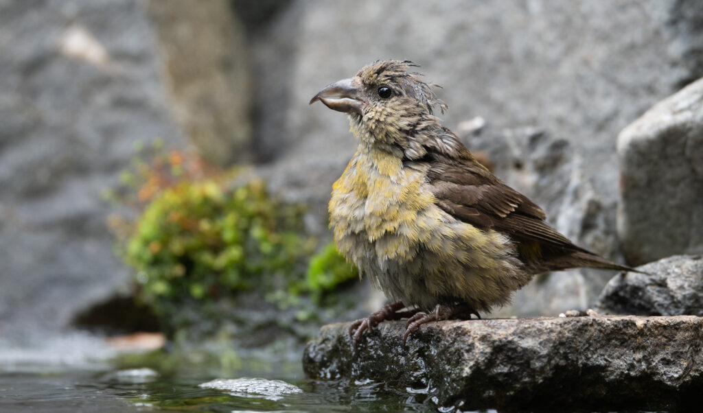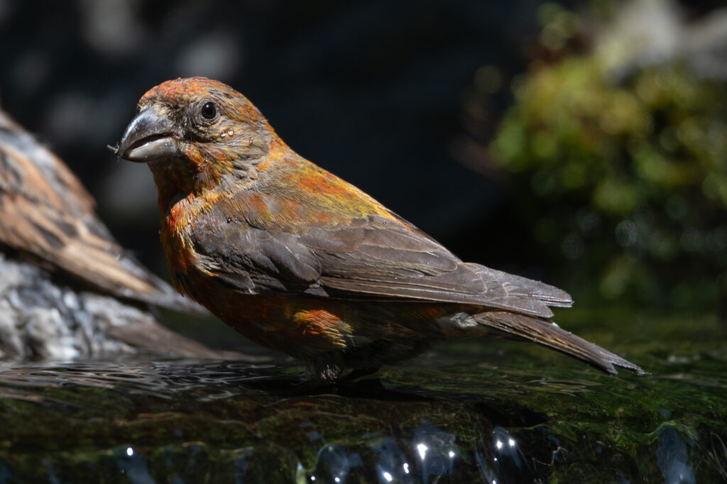 On the afternoon of July 25, 2025, I spent a couple of hours in the yard and took over 250 photographs. I had three significant sightings. The first was two Red crossbills, one of which was a juvenile and the other perhaps a not-so-bright female parent.