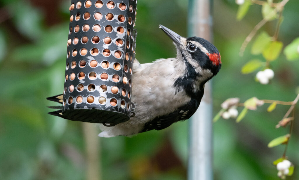 The following photo is of a male Downy woodpecker for comparison…