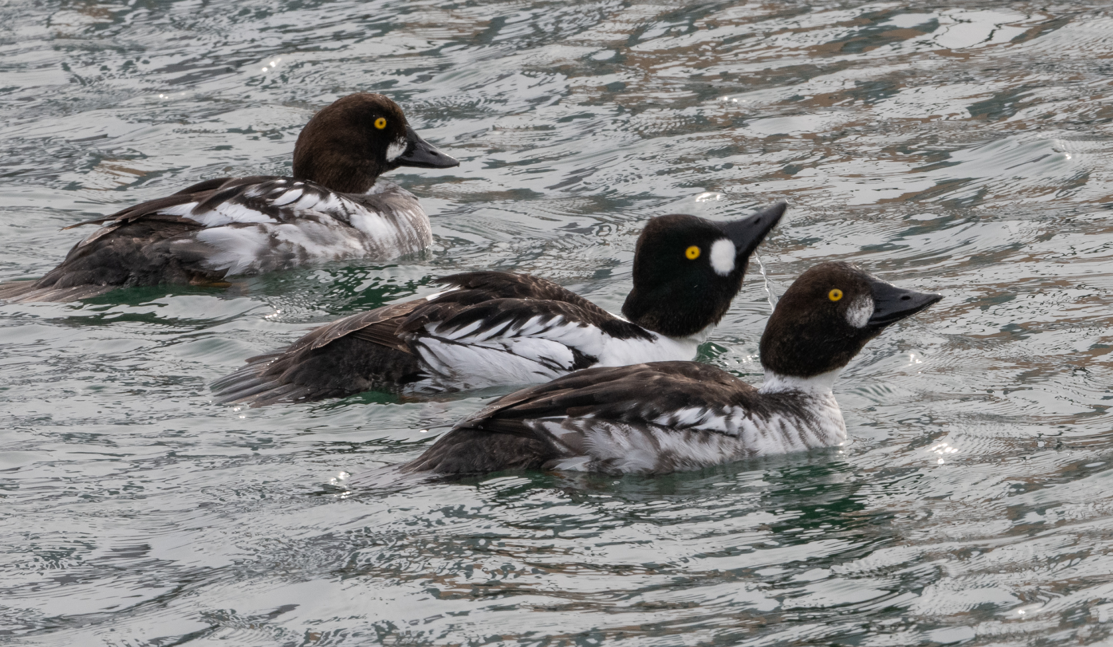 I first made a stop at the Cap Sante Marina and photographed a male Common merganser and several female Common goldeneyes.