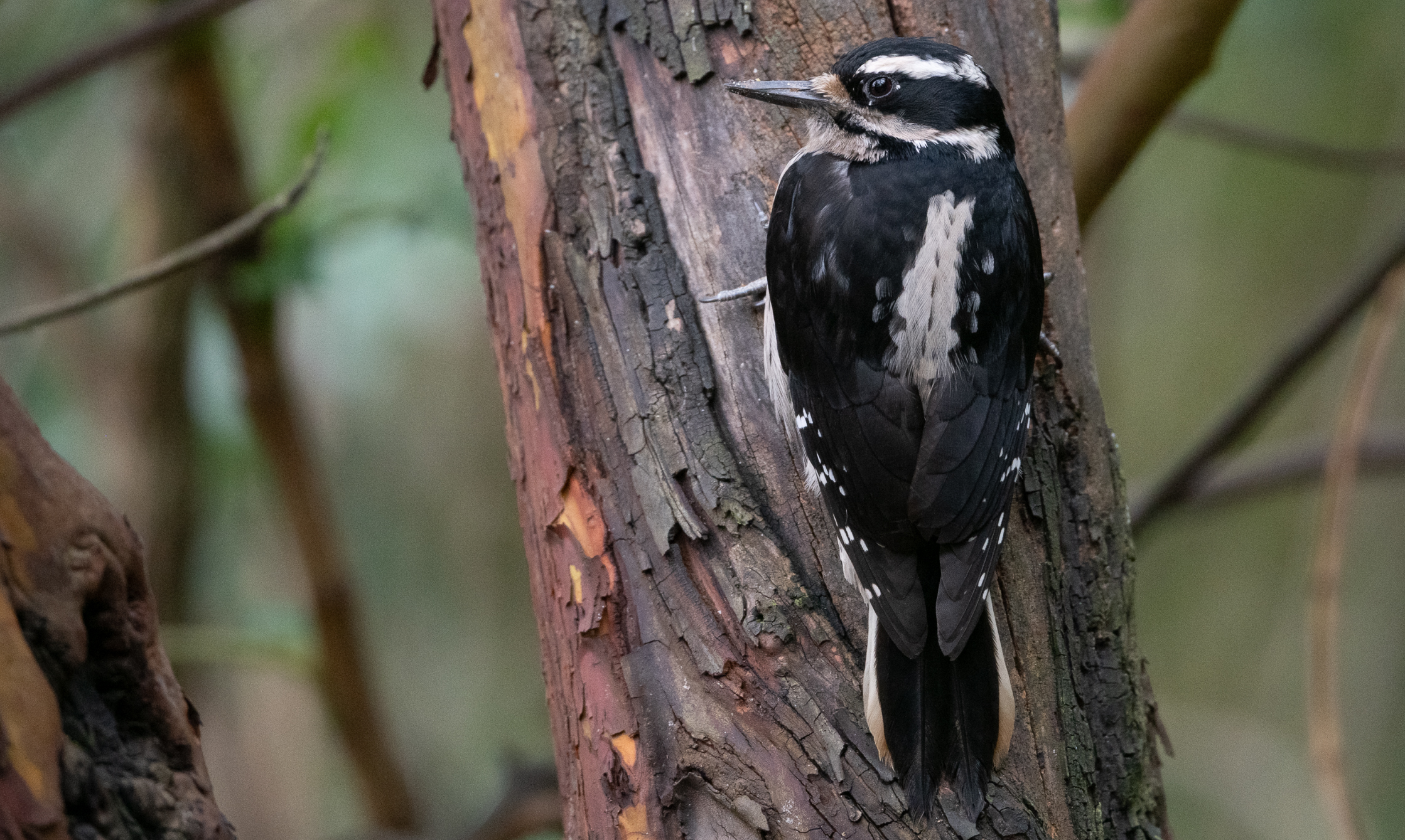 A female Hairy woodpecker visited the yard and I managed a rare photo of it in a natural environment instead of on the peanut feeder.
